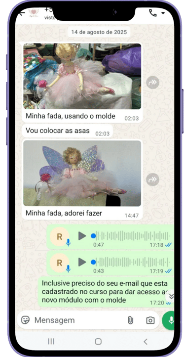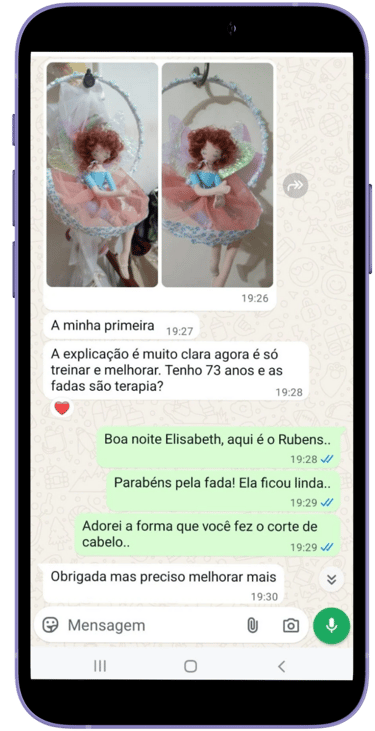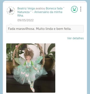 Suas Fadas são um verdadeiro sucesso, sempre personalizadas sob medida e elogiadas por clientes de todo o Brasil. Além de encantarem com sua beleza, elas carregam um toque único e especial, que transforma cada Fada em uma obra de arte exclusiva.