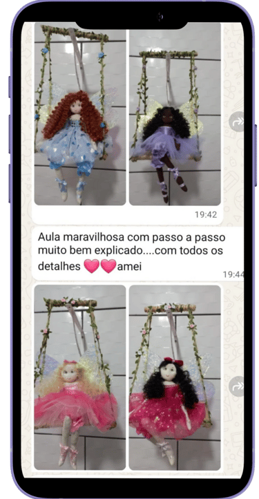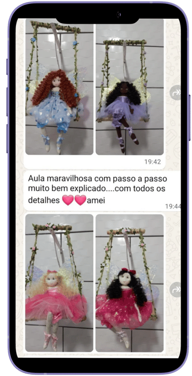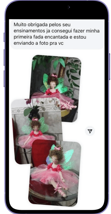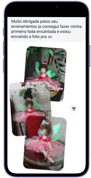 Com o Curso Criadoras de Fadas, você vai aprender passo a passo como confeccionar Fadas Encantadas com riqueza de detalhes, mesmo que esteja começando do zero.