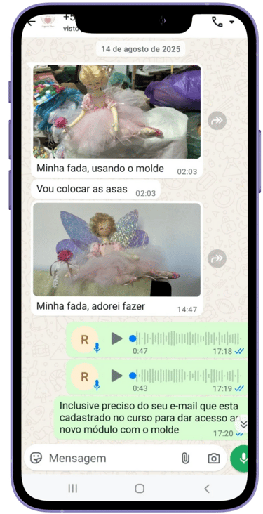 ✅ Aprender os pontos certos para fazer Fadas com acabamento impecável, mesmo que nunca tenha costurado antes.
