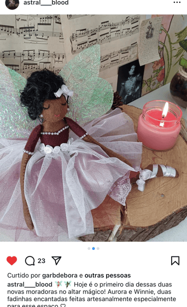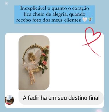 Suas Fadas são um verdadeiro sucesso, sempre personalizadas sob medida e elogiadas por clientes de todo o Brasil. Além de encantarem com sua beleza, elas carregam um toque único e especial, que transforma cada Fada em uma obra de arte exclusiva.